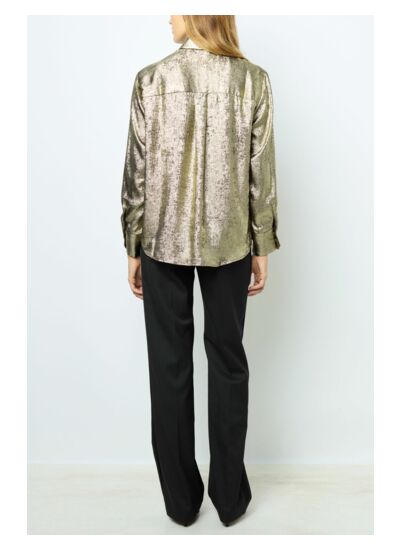 Chemise dorée sur fond noir dans un mélange fluide. Look à la fois contemporain et sophistiqué.