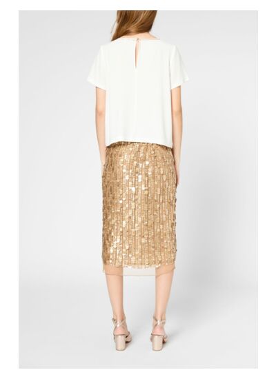 Top fluide en microfibre au col orné d'un liseré en lurex.