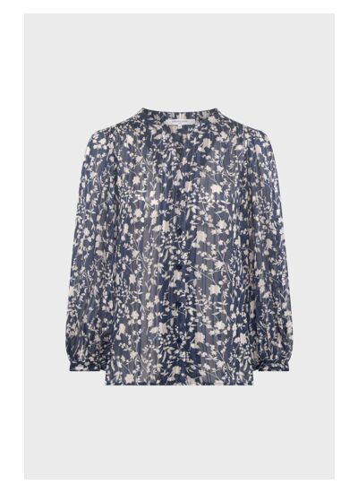 Blouse fine et fluide avec un imprimé floral et des fils de lurex.