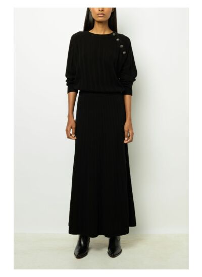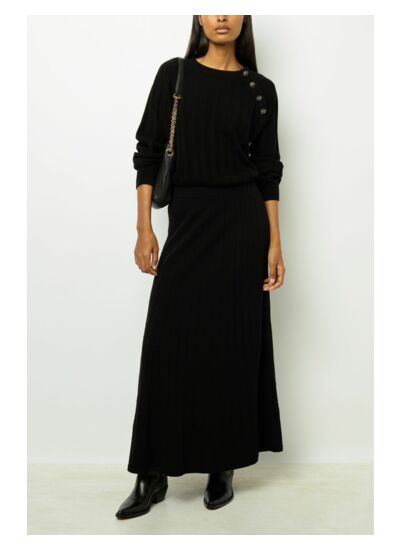 Jupe trapèze en maille à côtes. Un indispensable du vestiaire hivernal, à porter chic ou décontracté.