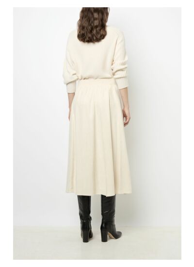 Quelle est la coupe de la jupe CLAUDINE ? La jupe CLAUDINE présente une forme fluide évasée qui flatte la silhouette tout en offrant un confort optimal grâce à sa taille élastiquée.