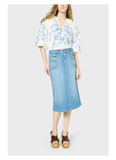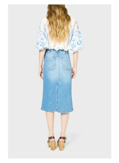 Jupe droite en denim bleu ciel inspirée du jean ANNA.