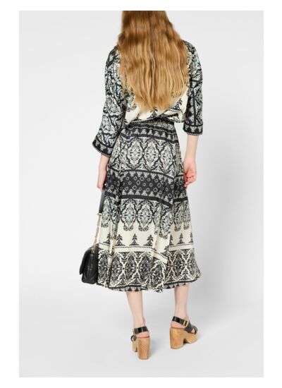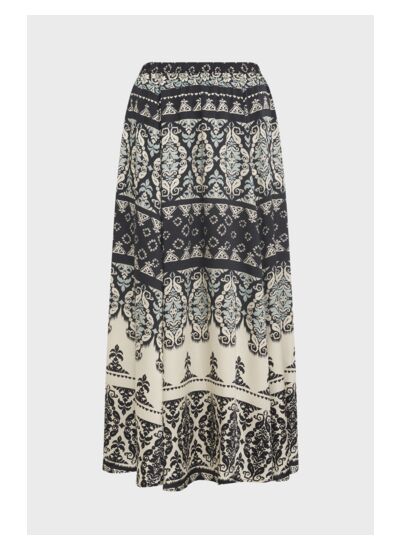 Jupe midi avec un imprimé indien dans une matière fluide. Taille élastiquée.