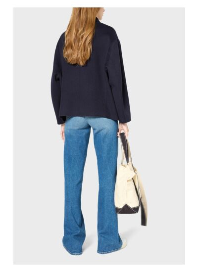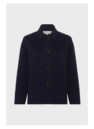 Manteau court en 100% laine fine double face dans un esprit surchemise.