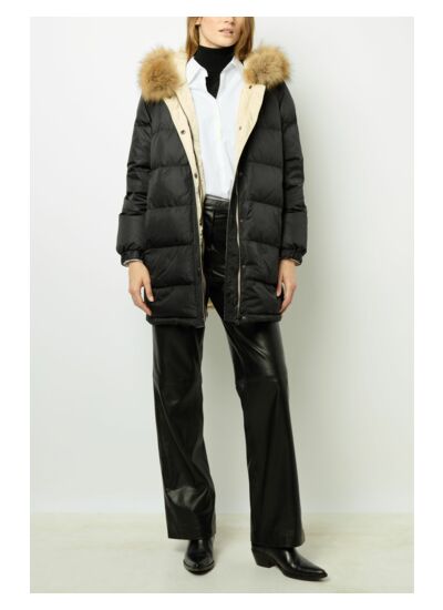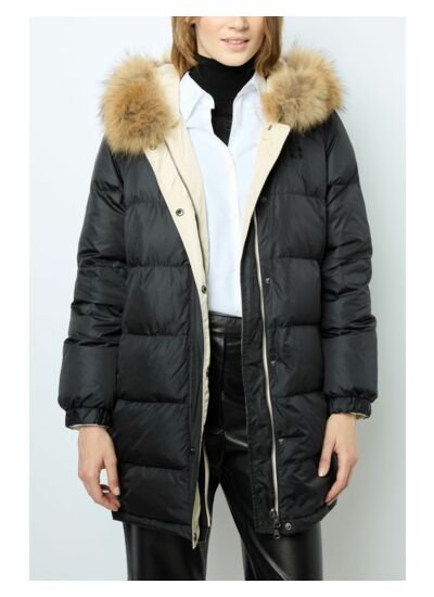 Doudoune réversible avec une capuche en fourrure amovible.