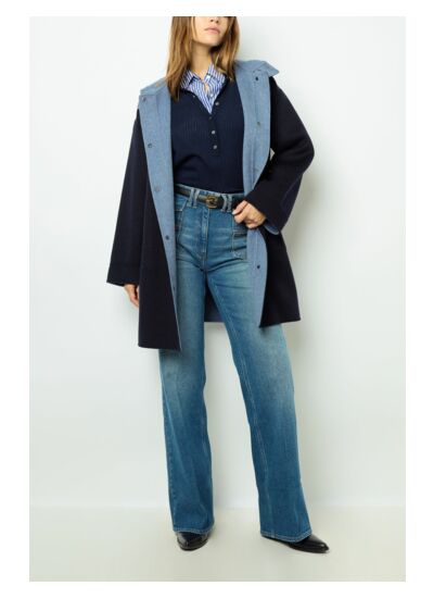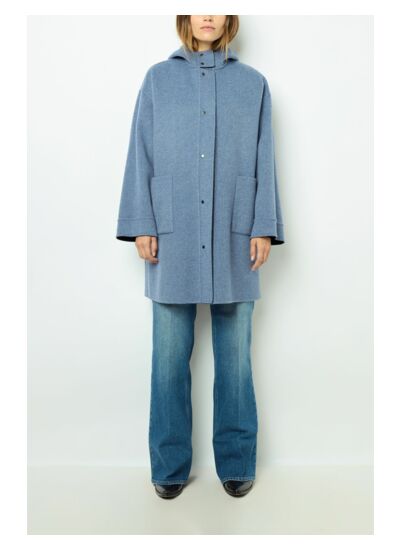 Manteau réversible à capuche en laine fine double face, toucher identique à l'intérieur et à l'extérieur. Idéal pour la mi-saison. 100% laine.