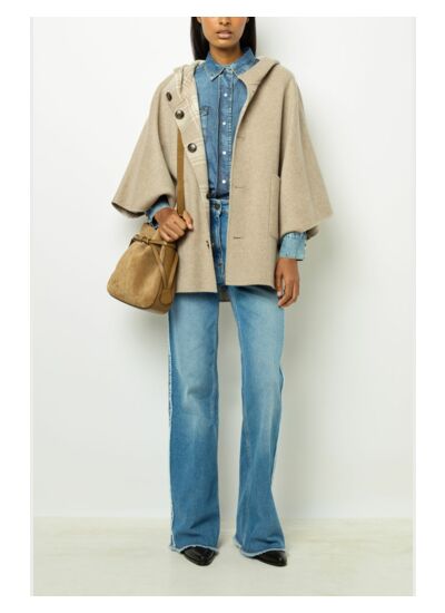 Cape réversible en laine mélangée (laine majoritaire) avec une capuche.