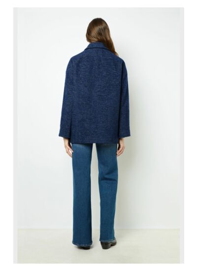 Comment choisir la taille idéale pour ce manteau oversize ? La forme oversize est pensée pour un confort ample sans être trop volumineuse. La mannequin mesure 174 cm et porte une taille 1, ce qui correspond à une taille standard. Pour un effet plus ajusté, optez pour votre taille habituelle, sinon prenez une taille en dessous pour un rendu plus cintré.
