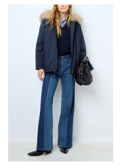 Parka courte en coton avec une capuche en fourrure.