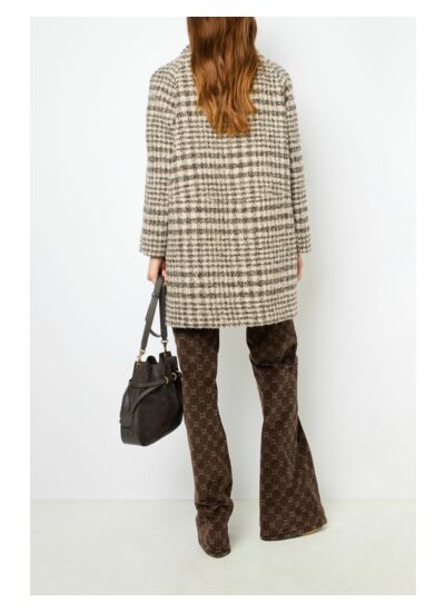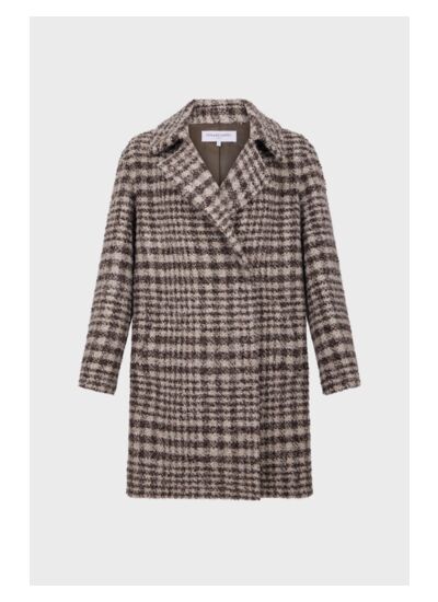 Manteau court à carreaux dans un chaud mélange contenant de la laine et de l'alpaga. Effet bouclette.