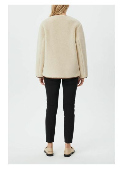 Comment entretenir ce manteau en fausse fourrure ? Pour préserver la qualité de la fausse laine et les finitions en simili cuir, il est recommandé de nettoyer ce manteau à sec. Évitez le lavage en machine et le repassage direct pour conserver la texture et la forme du vêtement.