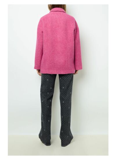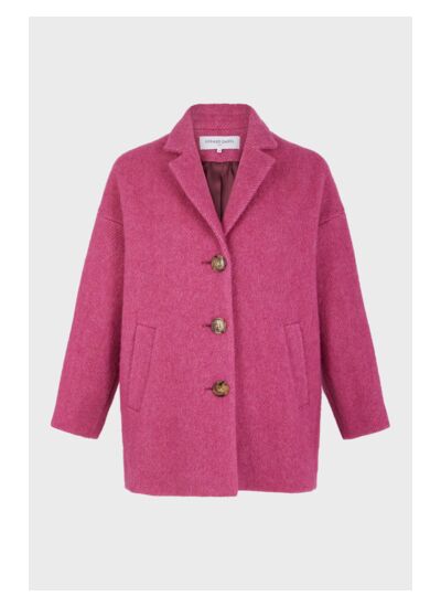Manteau court oversize en 100% laine vierge. Coloris fuchsia pour dynamiser les tenues d'hiver.