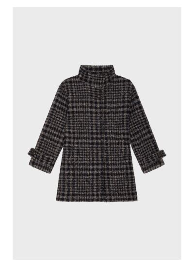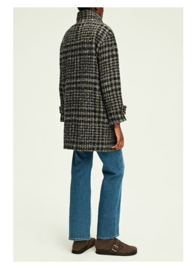 Manteau col montant à carreaux dans un chaud mélange contenant de la laine et de l'alpaga.