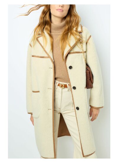 Manteau de plein hiver en fausse fourrure de mouton. Esprit vintage chic.