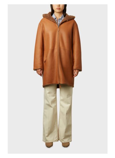 Manteau réversible en peau de mouton retournée. Cuir lisse "silky" au toucher très doux.