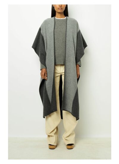 Poncho bi-colore gris et anthracite en laine mélangée. A porter avec une ceinture pour un look plus sophistiqué.