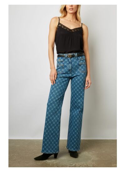 Jean flare avec monogramme pour un look très seventies. Pièce iconique de la Maison Darel.