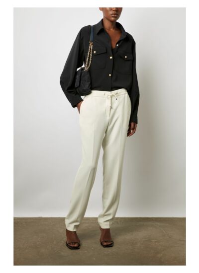 Pantalon droit en microfibre pour un tomber fluide. A porter dans un esprit tailleur ou casual avec des sneakers.