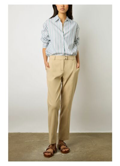 Le pantalon présente une coupe droite avec des jambes ajustées et une longueur 7/8, idéale pour mettre en valeur vos chaussures et créer une silhouette moderne.