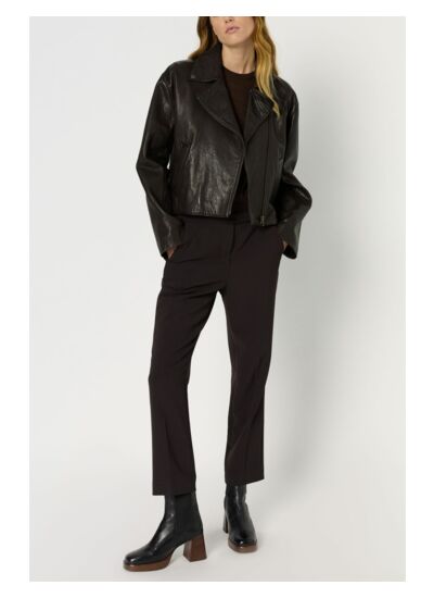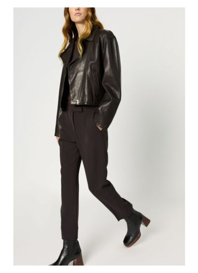 Quelle matière compose ce pantalon et quel est son avantage ? Ce pantalon est confectionné dans une matière fluide marron légèrement stretch, offrant une liberté de mouvement tout en conservant une silhouette élégante et structurée. La présence de stretch garantit un confort durable tout au long de la journée.
