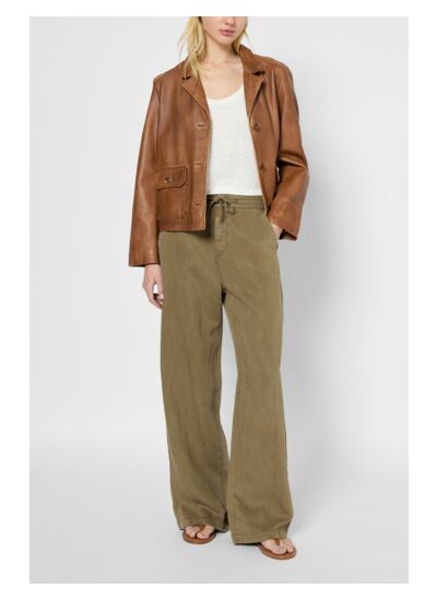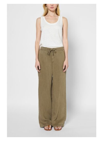 Pantalon large dans un doux mélange de lyocell et de lin. Dos élastiqué et lien à nouer à la taille pour un esprit casual.
