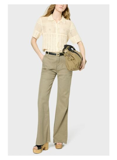 Pantalon large en lin et coton dans un esprit casual. Coloris kaki tendance.