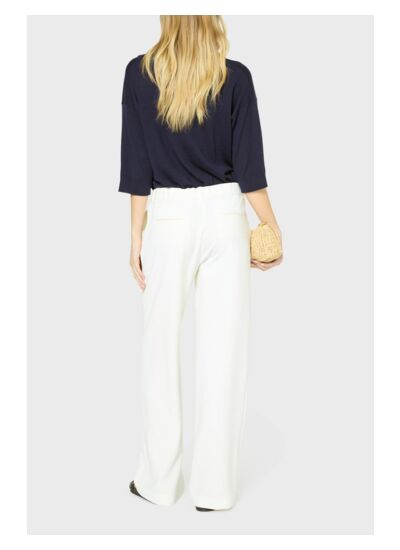 Pantalon large en microfibre fluide pour un tomber chic et féminin. Dos élastiqué.