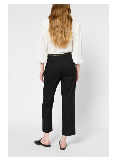 Pantalon droit en coton noir avec le dos élastiqué pour plus de confort.