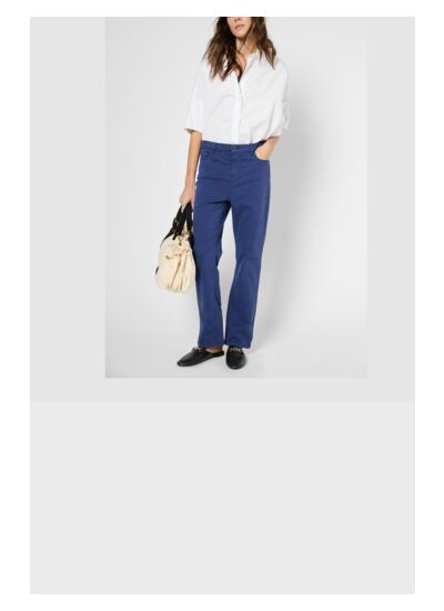 Adoptez un style chic et décontracté avec ce pantalon slim en coton doux, conçu pour épouser parfaitement vos formes tout en offrant un confort optimal. Sa taille haute et sa coupe slim mettent en valeur votre silhouette, tandis que la matière stretch vous permet de bouger librement tout au long de la journée. Avec ses cinq poches pratiques, ce pantalon devient un allié incontournable pour vos sorties, que ce soit pour une journée au bureau ou un brunch entre amis.