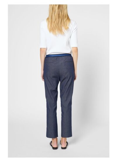 Pantalon droit en coton mélangé dans un esprit denim. Dos élastiqué pour plus de confort.