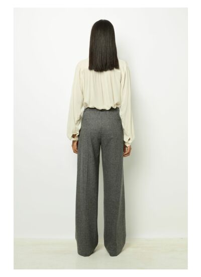 Ce pantalon NADYGE convient-il pour un look professionnel ? Oui, son motif à chevrons et sa coupe droite en laine mélangée lui confèrent une élégance classique idéale pour un style tailleur, surtout associé à la veste assortie. Comment choisir la taille idéale ? La mannequin mesure 174 cm et porte une taille 38, ce qui peut servir de référence. Le dos élastiqué assure un ajustement confortable, facilitant le choix selon vos mesures habituelles. Quels sont les détails pratiques du pantalon ? Il dispose d’une fermeture zip sous patte avec bouton apparent, de poches italiennes devant et de poches plates passepoilées au dos, alliant fonctionnalité et finition soignée. Ce pantalon est-il adapté pour un usage quotidien ? Sa laine mélangée et sa coupe droite garantissent confort et durabilité, parfaits pour un port régulier tout en conservant un look raffiné.