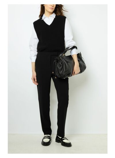 Pantalon ajusté en microfibre noir pour mettre en avant la silhouette. Dos élastiqué pour un plus grand confort.