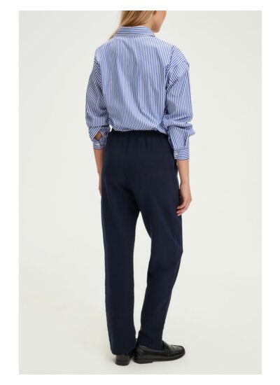 La coupe est droite avec une taille élastiquée pour s’adapter facilement. La mannequin mesure 174 cm et porte une taille 38, ce qui peut servir de référence pour votre choix.