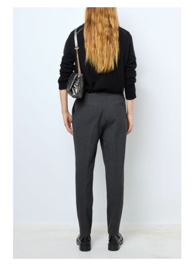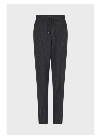 Pantalon droit à fines rayures. Taille élastiquée pour un plus grand confort.
