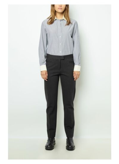 Facile à associer, ce pantalon se marie parfaitement avec une blouse fluide pour un look chic ou un t-shirt basique pour une tenue plus décontractée. Sa fermeture zippée sous patte, accompagnée de deux agrafes et d'un bouton caché, assure un maintien impeccable tout en préservant l'esthétique soignée de la pièce.