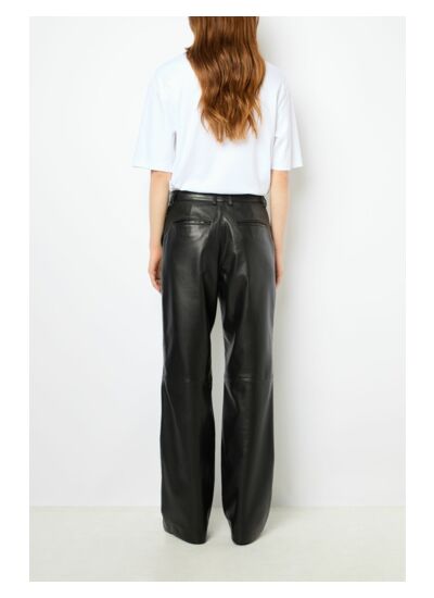 Pantalon droit en 100% cuir d'agneau, matière noble par excellence. Chic et rock.