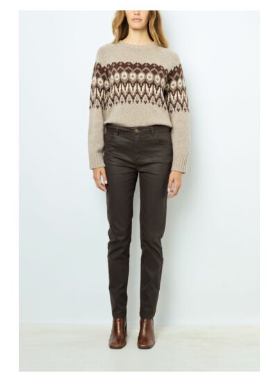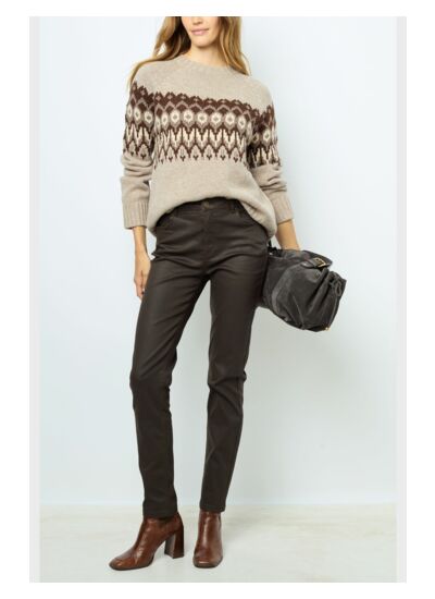 Jean en coton enduit pour un effet brillant.