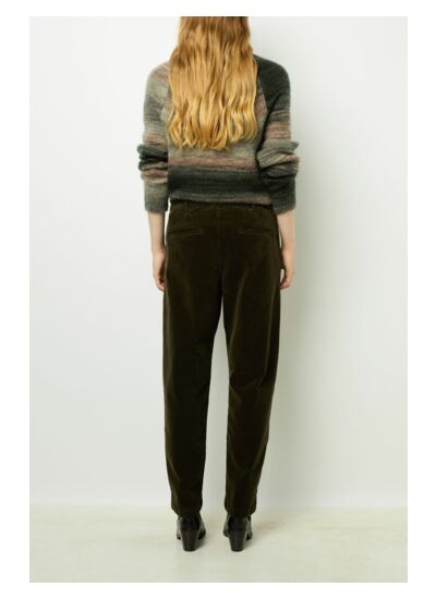 Le velours uni et la coupe droite en font un pantalon polyvalent, adapté aussi bien aux tenues habillées qu’aux looks casual chic.