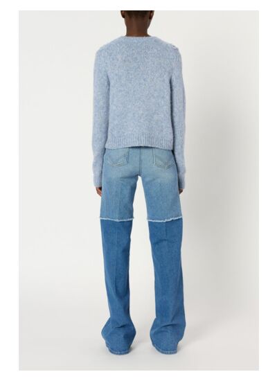 Ce pull en laine et angora mélangés est l'incarnation du confort et du style pour la saison hivernale. Avec son motif à torsades et ses jeux de points délicats, il apporte une touche d'élégance à votre garde-robe. Sa couleur bleu ciel chiné s'associe parfaitement avec des pièces noires ou bleu marine, créant des ensembles à la fois modernes et intemporels.