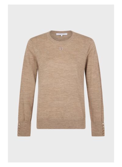 Élevez votre garde-robe avec ce pull en laine mérinos, un incontournable pour toute saison. Sa forme droite et son col rond offrent une silhouette élégante, tandis que la laine fine unie, légèrement chinée, ajoute une touche de sophistication à vos tenues. Les manches longues, agrémentées de petits boutons ronds aux poignets, apportent une délicatesse subtile, parfaite pour un look raffiné.