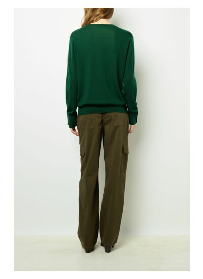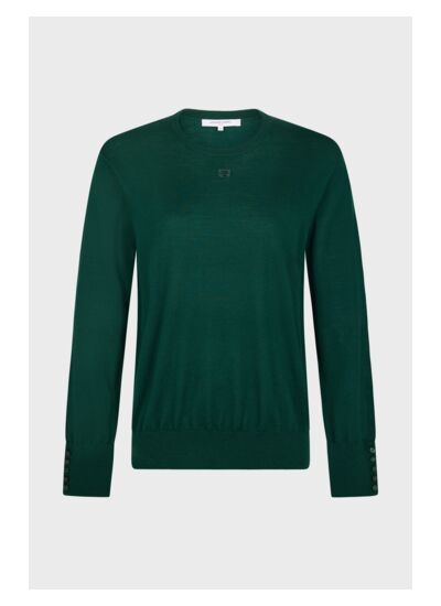 Pull à col rond en 100% laine mérinos. Coloris vert profond pour sublimer un marine ou un noir.