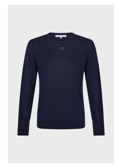 Pull à col rond en 100% laine mérinos. Coloris marine intemporel.