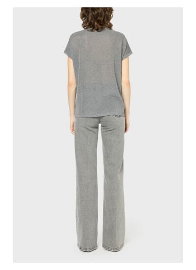 Pull à col rond et manches courtes en maille subtilement irisée. A porter avec le pull assorti pour un effet twin-set.