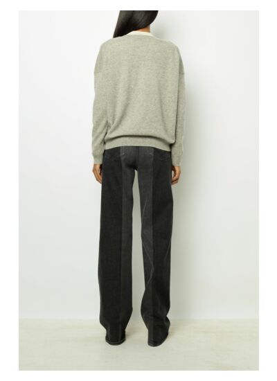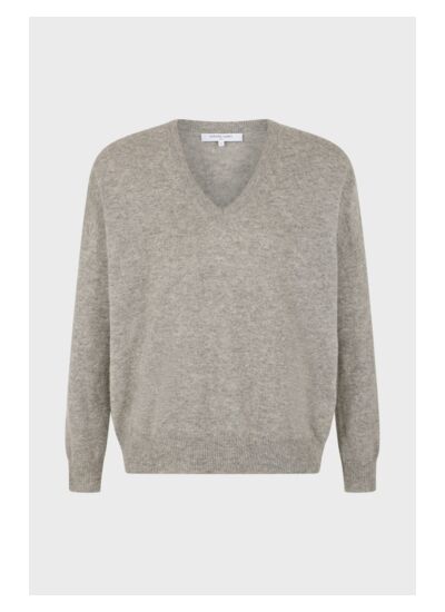 Quelle est la particularité du col V sur ce pull ? Le col V apporte une touche d’élégance tout en allongeant visuellement le cou, ce qui rend ce pull polyvalent pour un look chic ou décontracté.