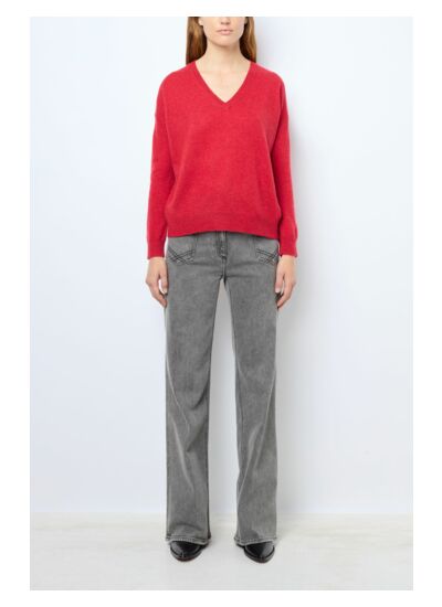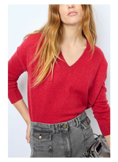 Pull à col V en 100% cachemire pour une grande douceur. Coloris rouge profond pour dynamiser une teinte foncée.
