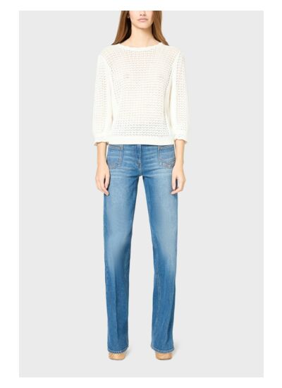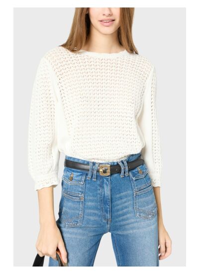 Pull ajouré à col rond en 100% coton.