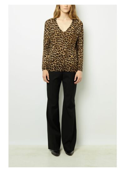 Pull léopard en 100% laine mérinos pour un style casual chic.