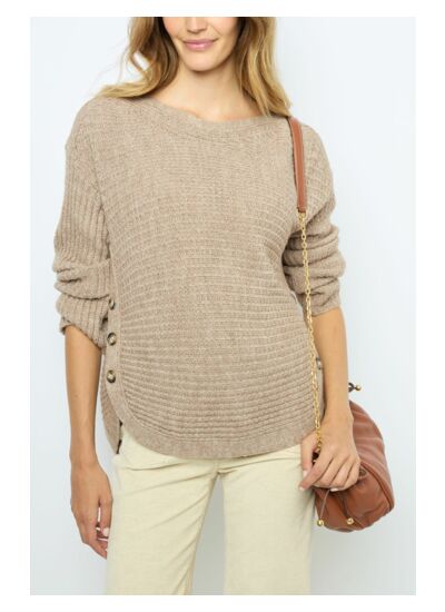 Pull à col bateau orné de boutons sur les côtés. En laine mélangée.