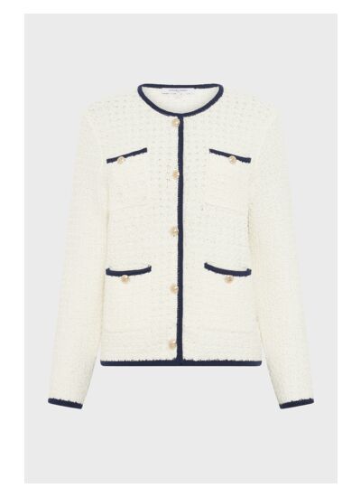 Cardigan en coton mélangé tricoté dans un esprit crochet. Finitions contrastées et boutons gravés.