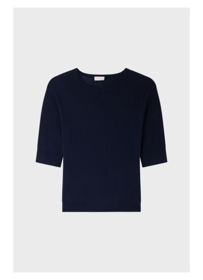 Pulll fin à manches courtes à côtes dans un mélange contenant de la laine.